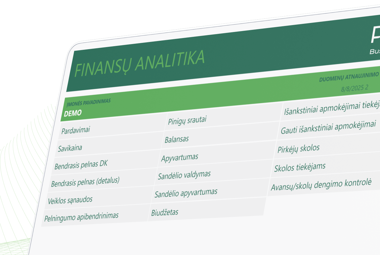 “Su PLY Business pagalba suderinome ir įsidiegėme pagrindinių įmonės finansinių rodiklių įvairiais pjūviais ataskaitas, leidžiančias vadovams greitai įvertinti situaciją ir priimti atitinkamus, faktais ir skaičiais paremtus sprendimus.”